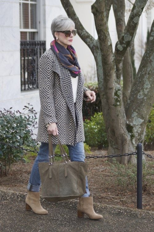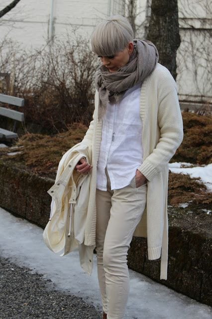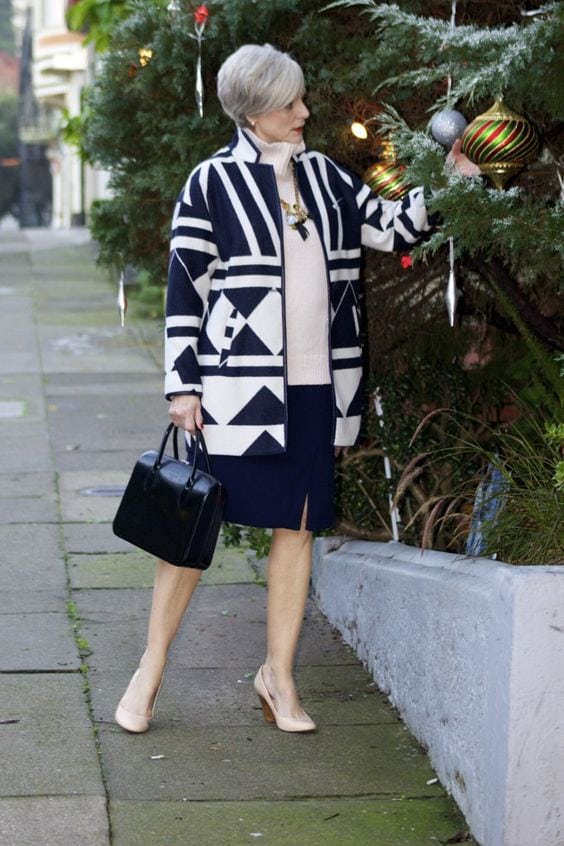 Трикотаж — это отличная одежда для дам в возрасте! Он может скрыть лишние складки, полноту, а может и преподнести в лучшем виде все ваши достоинства. Я советую обязательно иметь в своем гардеробе кардиган. Я его ношу поверх рубашки, с джинсами. Если вы не можете похвастаться хорошей талией, то выберите кардиган с поясом. Его можно и не завязывать, но он хорошо оформит фигуру. Если у вас тяжелые бедра, то не надо застегивать кардиган, если он будет слишком облегать, это только испортит вашу фигуру.